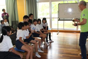 保険会社の方を講師に、4・5・6年生が防災の授業を行いました。自然災害で多くの方が大きな苦しみや悲しみを被っています。いつ、どのような形で自然災害が襲ってくるかわかりません。大切な人の命を守り、被害をできるだけ少なくするためにはどんな行動をしなければならないかなどについて教えてもらえました。子供たちは生々しい被災地の映像を真剣に、そして興味深く見ながら、防災について考えていました。