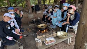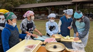 5年生の恵那山荘宿泊研修2日目は、仲間と協力して昼食のカレー作りを行いました。昨日のキャンプファイヤーで釜戸小学校と仲良く活動でき、カレー作りも同じ学校の児童のように和気あいあいと協力して行うことができました。怪我もなく、無事に帰校した子どもたちは「楽しかった」「カレーが美味しかった」と感想を伝えてくれました。来年度の修学旅行では、この仲間で一緒に奈良・京都に行きます。楽しみです。