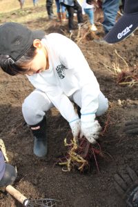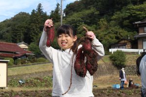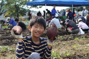 日吉町まちづくり協議会主催のにじいろファームさつまいも収穫祭が11月2日に行われました。6月に苗を植えた子供はたち札が立っている3株からさつまいもを掘り出していました。大きなさつまいもに驚きながら、袋にいっぱいのさつまいもを収穫できました。地域の皆さん、準備等ありがとうございました。