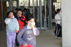 20分休みに、火災発生を想定した命を守る訓練をしました。子どもたちは予告無しの緊急放送に対して、それぞれの場でしっかり放送を聞いて、素早く運動場に避難しました。情報を聞き取り、避難経路を判断し、命を守る行動ができました。3時間目は4年生5年生6年生が起震車での地震体験をしました。災害はいつ来るかわかりません。その時にどう動けばいいか判断できるように、状況を変えながら訓練を繰り返し行っていきます。