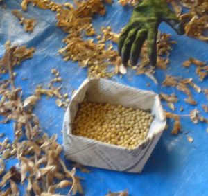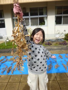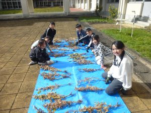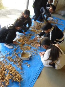 11日、総合的な学習の時間に3年生が育てた大豆を天日干しして、さやから取り出す作業を行いました。小さい大豆、大きい大豆いろいろでしたが、子どもたちは一つ一つ大事に大豆を取り出していました。1月には地域の方や保護者の協力を得ながら、この大豆を豆腐にします。楽しみです。