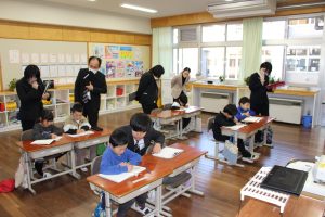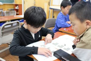 12日に2年生の算数の授業を全校職員が参観し、授業研究会を行いました。確かな学力を身に付けるために「説明ができることが本当の理解」をいう考えのもと、2年生がペアにキーワードを使って考え方をお話(説明)する姿から教師の指導援助の有効性について研究会を行いました。仲間に上手に説明する2年生の姿など、一生懸命に学習に向かう素晴らしさも交流しました。日吉小学校では、子どもたちに確かな力を付けていくために更に研修を進めていきます。