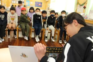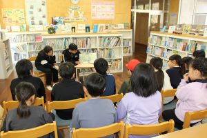 月曜日から図書委員会主催の読み聞かせを20分休みに行っています。図書館に来た十数名の児童が、図書委員の読み聞かせを静かに楽しそうに聞いていました。今年度も先生や、図書支援員さん、市民図書館の方にたくさん読み聞かせをしてもらった子どもたちです。お姉さんたち の読み聞かせはどうでしたか。