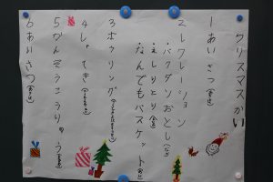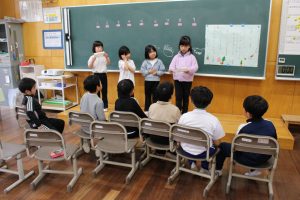 1年生の児童が企画したクリスマス会が24日に学級で行われました。爆弾まわし、ボーリング、射的など自分たちで考え、準備した遊びをみんなで楽しく行いました。遊び方を説明したり、時間を見て指示を出したりして、上手に子どもたちで運営することができました。今日はクリスマスイブです。