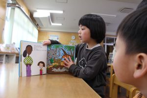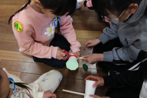 来年度入学する園児を対象にした半日入学を5日(木)に行いました。入学予定園児は6名です。保護者が事務連絡を受けている間、1年生が図書室の紹介やゲームをしながら校舎内を案内し、5年生は園児と一緒に教室でけん玉作りをして遊びました。2ヶ月後の入学を楽しみにしています。