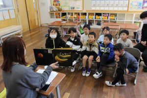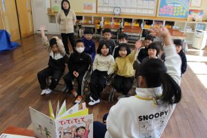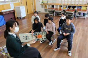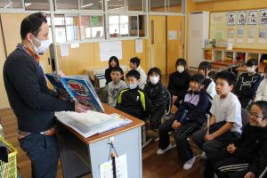 12日に低学年、13日に中学年、そして18日に高学年でブックトークを行いました。本を紹介してくれるのは市民図書館の職員です。4年生は「運ぶ」をテーマに式年遷宮で東濃ひのきを運ぶ写真や浮世絵も見ながら、運ぶにかかわる本の紹介をしてもらいました。たくさんの本を紹介してもらったり、読み聞かせをしてもらったりしたので、本への興味をより強くもつことができたようです。