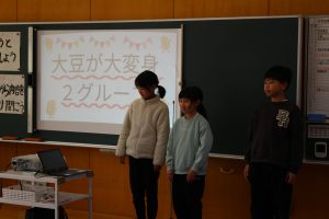 14日土曜日に授業参観を行いました。低学年は学びや頑張ったことの発表、3年生以上は総合的な学習の時間で学んだことを発表しました。3年生は大豆育てから豆腐作りまで、4年生は車いす体験などの5種類の福祉体験学習について、5年生は日吉の自然、里山体験などについて、6年生は細久手学習など郷土学習について発表しました。保護者だけでなくお世話になった地域の指導者も招待しました。子供たちは1年間の学びを上手に発表していました。ご参観ありがとうございました。