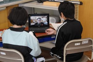 5年生6年生がそれぞれ英語の時間に3人の方とWebで英語交流をしました。3人の方は子どもたちにとって初対面で、すべて英語で話されます。事前に話す内容を決めていた子どもたちは、英語で質問されてドキドキでしたが、一生懸命英語で会話をしていました。予想以上にジェスチャーも交えた会話ができていたので、担任も子どもたちの英語の力、コミュニケーション能力、積極性の成長を喜んでいました。