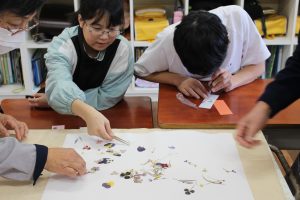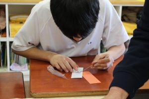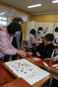 6年生が、日吉町更生保護女性の会の方と一緒に押花のしおり作りを行いました。裏面には自分で考えたメッセージが書いてあります。きれいな押花は更生保護女性の会の方が用意してくださいました。子どもたちはピンセットでいろいろな種類の花を組み合わせて、楽しくしおりを作成していました。子どもたちはいろいろな場で地域の方に応援してもらえて幸せです。